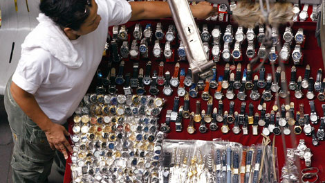 Đồng hồ hàng nhái bán công khai trên đường phố Thái Lan.