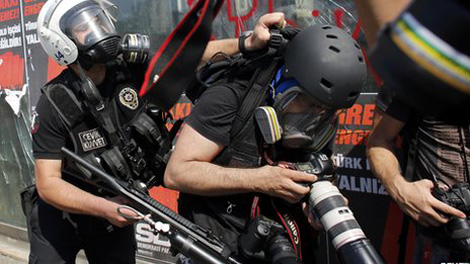| Cảnh sát Thổ Nhĩ Kỳ đang tấn công một nhà báo (giữa). |