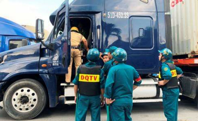 Trong đợt kiểm tra tại cụm cảng Trường Thọ, lực lượng chức năng của Công an thành phố Hồ Chí Minh phát hiện nhiều tài xế có kết quả dương tính với ma túy. Ảnh: Minh Đức.