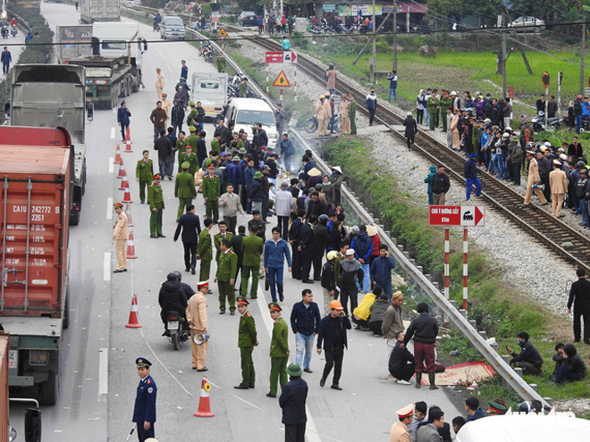 Hiện trường vụ tai nạn giao thông tại Kim Thành, Hải Dương.