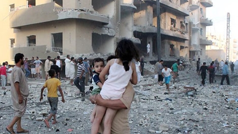 | Thành phố Raqqa ngày đêm hứng chịu những đợt không kích. |