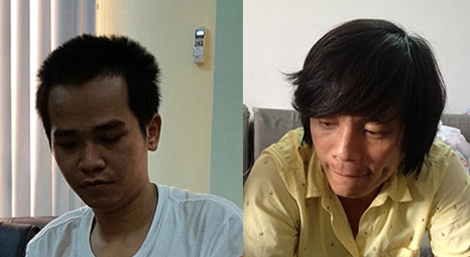 | Đối tượng Lê Tấn Cường và Lữ Minh Trí tại cơ quan Công an. |