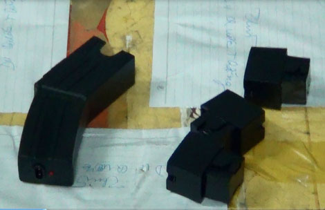 | Súng điện thu được tại nhà của Du Quốc Thắng. |