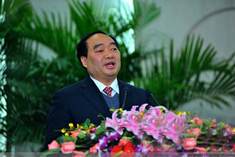 | Lôi Chính Phú khi còn đương chức trong một buổi rao giảng đạo đức. |