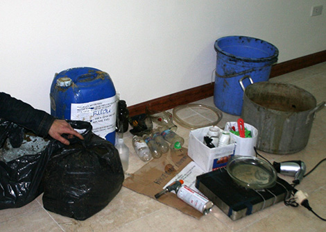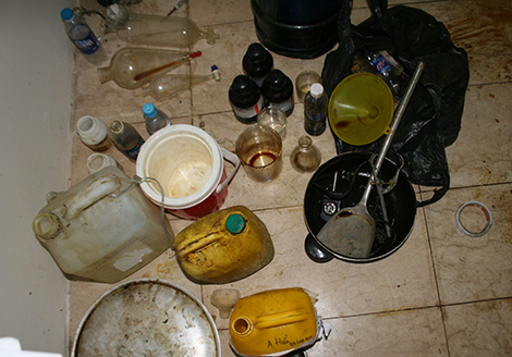 | Hiện trường một vụ sản xuất ma túy tổng hợp. |