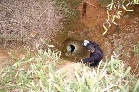 Ngày 16 tháng 1 năm 2009, một người dân tên là Ngô Bân ở thôn Ngân Tinh, huyện Vọng Thành báo với cảnh sát là khi anh lên núi kiếm củi thấy có một cái hố hình vuông dài một mét, rộng nửa mét. Anh Ngô chui xuống dưới thấy cái hố sâu độ 5 mét, dưới đáy có một tấm gỗ, anh lật tấm gỗ lên, phía dưới lại thấy một hố tròn, sâu không thấy đáy.