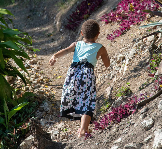 | Justice chơi đùa ở Port Moresby. Cô bé được giải cứu bởi Tổ chức bộ lạc Papua New Guinea sau khi bị buộc tội phù thủy và bị tra tấn bởi những người mà cô bé quen biết. |