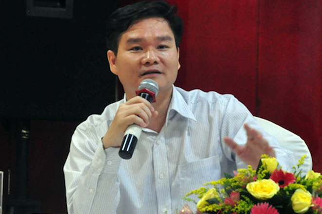 | Phạm Thanh Hải đang thuyết trình "học làm giàu" tại các buổi hội thảo để dẫn dụ nhà đầu tư nộp tiền. |