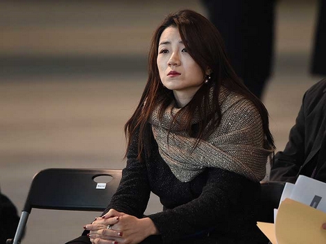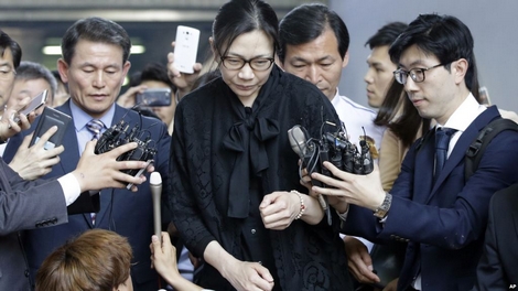 | Bà Cho Hyun-ah bị các nhà báo vây quanh khi rời khỏi tòa án ở Seoul ngày 22-5-2015. |