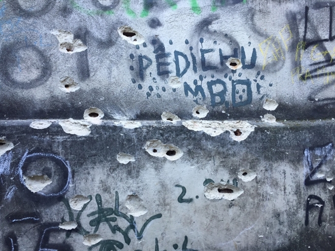Chi chít những vết đạn trên tường