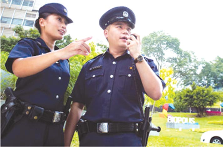 | Cảnh sát Singapore khi làm nhiệm vụ. |