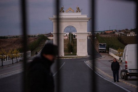 | Lối vào trại của nhóm OMPI được xây dựng ở Manez, Albania. |