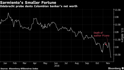 Tháng 11 vừa qua, ông Luis Carlos Sarmiento, nhà sáng lập của một trong những tập đoàn ngân hàng lớn nhất Colombia đã phải chứng kiến khối tài sản khổng lồ của mình mất giá dần dần khi cuộc điều tra tham nhũng và nhận hối lộ nhằm vào “nhà khổng lồ” về xây dựng của Brazil Odebrecht SA được tiến hành.