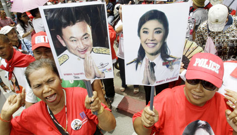 | Người biểu tình ủng hộ ông Thaksin và bà Yingluck. |