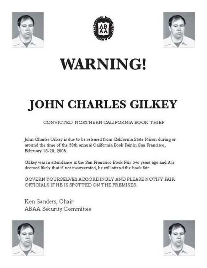 Ngày 29/1/2003, cảnh sát bắt giữ người xưng danh là Heath Hawkins khi tới lấy cuốn sách. Người bị bắt sau đó được xác định là John Charles Gilkey, không có nghề nghiệp ổn định, từng phải ngồi tù vì dùng chi phiếu giả, khi bị bắt vẫn đang trong thời gian thử thách. Khám nhà nghi phạm, cảnh sát phát hiện một số cuốn sách bị trộm và nhiều hóa đơn thanh toán tiền phòng khách sạn.