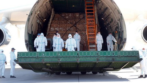| Một máy bay vận tải chở khẩu trang từ Trung Quốc hạ cánh xuống phi trường Leigzig, Đức ngày 27-4-2020. |