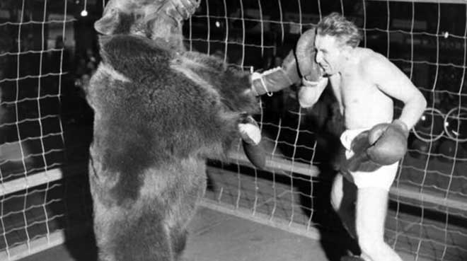 | Những trận boxing giữa gấu và người khá phổ biến ở thế kỷ XIX. |