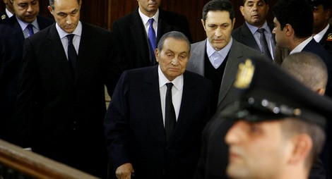 Năm 2012, ông Mubarak bị bắt giam vì cáo buộc liên quan tới việc ra lệnh sát hại 850 người biểu tình năm 2011. Năm 2012, ông bị kết án tù chung thân với tội danh mưu sát 239 người biểu tình. Tháng 1/2013, Toà án Tối cao Ai Cập bác bỏ bản án trên và yêu cầu xét xử lại. Đến tháng 11/2014, Toà hình sự tuyên ông Mubarak vô tội, cho rằng quyết định truy tố của công tố viên đối với ông Mubarak vào năm 2011 là thiếu cơ sở pháp lý.