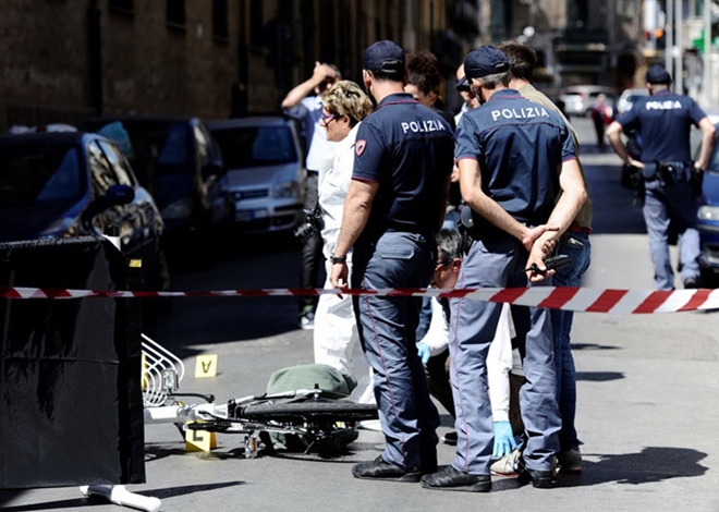 | Cảnh sát phong tỏa hiện trường vụ trùm mafia Giuseppe Dainotti bị bắn chết ở Palermo. |