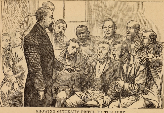 Phiên tòa xét xử Guiteau diễn ra vào tháng 11 năm đó. Trong phiên tòa Guiteau đã nhận được sự chú ý của giới truyền thông vì hành vi kỳ quái của mình, như liên tục xúc phạm đội bảo vệ của ông ta, đưa ra lời khai bằng những bài thơ sử thi mà ông ta đọc thuộc lòng, và xin lời khuyên pháp lý từ khán giả ngẫu nhiên thông qua các ghi chú.