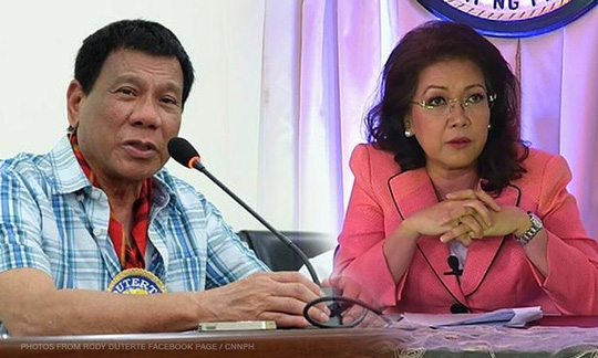 | Tổng thống Philippines Rodrigo Duterte (trái) và Chánh án Tòa án tối cao Maria Lourdes Sereno. |