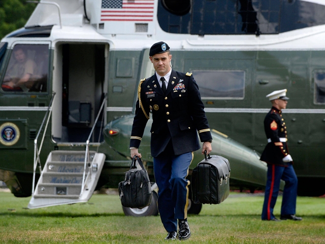 Bạn có đoán ra được “quả bóng” đó là gì chưa? Nó chính là “quả bóng hạt nhân” (nuclear football) của các tổng thống Mỹ.