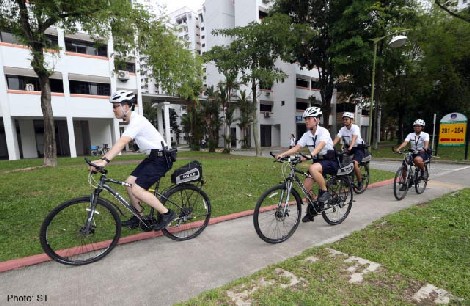 | Cảnh sát Singapore tuần tra bằng xe đạp. |