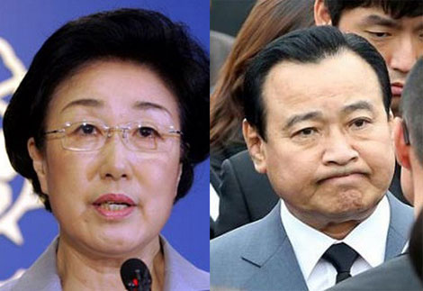 | Bà Han Myeong-sook (trái) và ông Lee Wan-koo. |