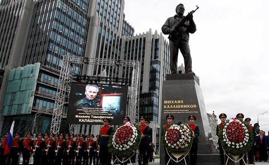 Được biết, sáng 19-9, Bộ Văn hóa cùng Giáo hội Chính thống Nga đã làm lễ khánh thành tượng đài bằng vàng cao 7m (trị giá 35 triệu rub, khoảng 538.000 USD), thể hiện hình ảnh ông Mikhail Timofeevich Kalashnikov đứng oai hùng, cầm khẩu súng nổi tiếng của mình. Đây là cách tôn vinh “cha đẻ” súng AK-47 và việc này được Hiệp hội sử quân sự Nga ủng hộ.