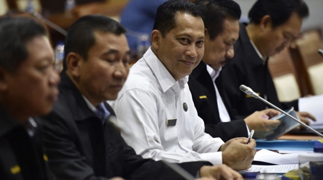| Giám đốc cơ quan chống ma túy Indonesia (BNN) Budi Waseso (áo trắng) tại một phiên họp. |