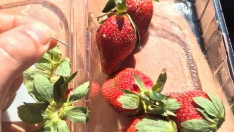 | Cảnh sát đang điều tra vụ kim khâu trong dâu tây. |