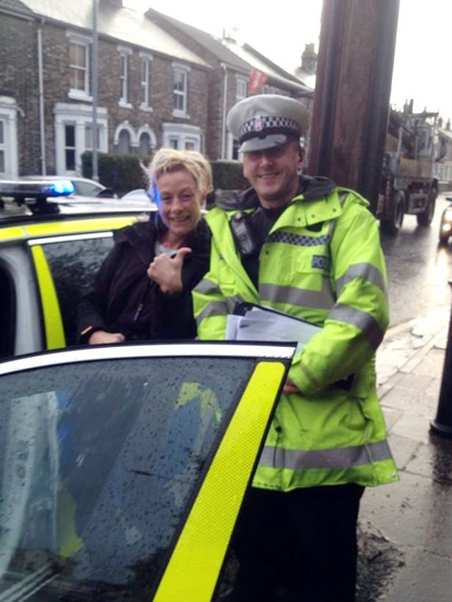 Một chiếc xe cảnh sát dừng lại và viên cảnh sát hỏi bà chuyện gì đã xảy ra. Cảnh sát viên Mark Hercules thuộc Sở Cảnh sát Essex, đã chứng kiến vụ việc, cho biết: "Chiếc xe chạy ngang qua vũng nước với tốc độ tương đối nhanh đã làm bọn trẻ và mẹ chúng ướt sũng. Chúng tôi có thể nghe được những tiếng hét của bọn trẻ khi chúng bị chiếc xe làm ướt quần áo, cặp sách".