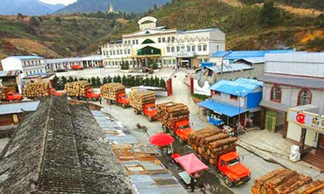 | Những đoàn xe Trung Quốc chở gỗ Tek từ thị trấn Laiza về tỉnh Vân Nam, Trung Quốc. |