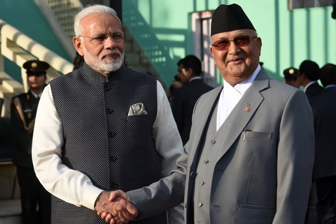 | Thủ tướng Nepal KP Sharma Oli (phải), chào mừng Thủ tướng Ấn Độ Narendra Modi ở Kathmandu. Tình báo Nepal là đồng minh quan trọng của Ấn Độ trong nỗ lực chống khủng bố. |
