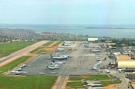 | Sân bay quốc tế Quatro de Fevereiro, Luanda, Angola, nơi chiếc Boeing 727-223 bị bỏ lại. |