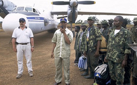 Viktor Bout (áo trắng), ảnh do phóng viên Wim Van Cappellen chụp ở Congo, năm 2001.