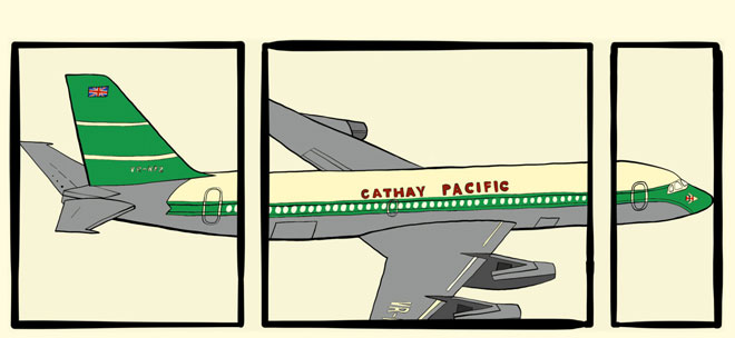 | Chuyến bay số hiệu CX700Z, mã đăng ký Convair 880 VR-HFZ của hãng Cathay Pacific với bộ ổn định ở phía tay phải bị hư hỏng khiến máy bay bị rơi. |