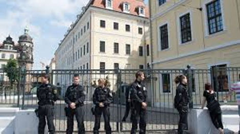 An ninh thắt chặt quanh khách sạn Taschenbergpalais trước thời điểm khai mạc kỳ họp thường niên của Club Bilderberg.