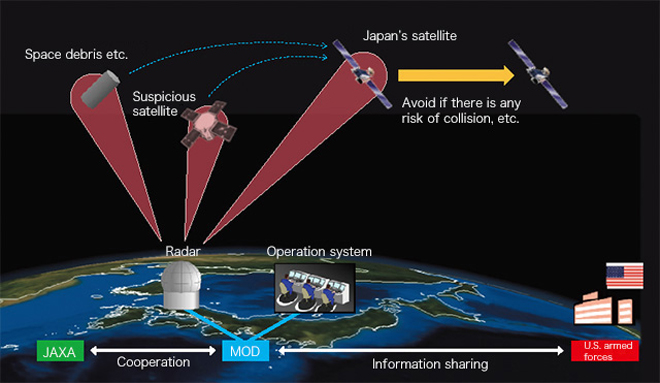 Bởi vì các tiền đồn của quân đội Mỹ ở Châu Á bị hạn chế, trinh sát trên không ở khu vực này cũng gặp khó khăn nên theo một quan chức của Bộ Quốc phòng Nhật Bản, "sự đóng góp của Nhật Bản đang được tìm kiếm (theo cách sắp xếp này) là điểm cộng cho quân đội Mỹ. Hiện tại, Bộ Quốc phòng Nhật cũng đang tìm kiếm sự hợp tác của Mỹ trong việc bảo vệ các vệ tinh của Nhật Bản, đồng thời hướng tới phát triển công nghệ độc lập để loại bỏ các mảnh vỡ không gian và trốn tránh các cuộc tấn công vệ tinh trong tương lai.