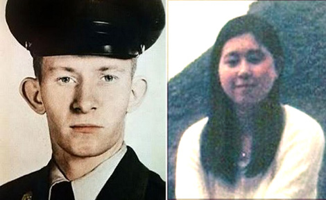 | Jenkins khi còn là trung sĩ quân đội Mỹ ở Bàn Môn Điếm và Hitomi Soga lúc đang theo học ngành điều dưỡng ở Nhật Bản. |