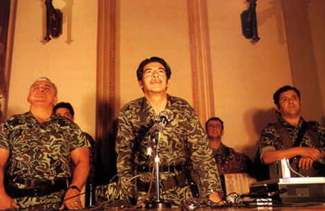 | Rios Montt (giữa) khi đang nắm giữ quyền lực. |