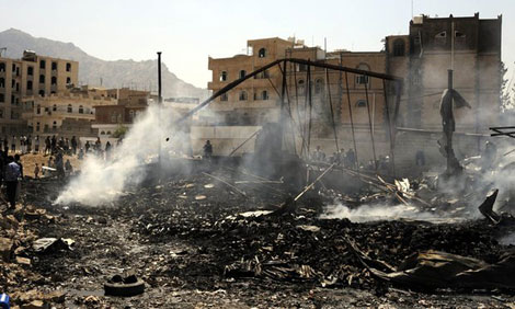| Quang cảnh một cuộc không kích ở Sanaa, Yemen. Ảnh: Anadolu. |