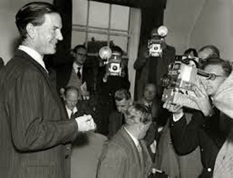 | Kim Philby tươi cười xuất hiện trong buổi họp báo quốc tế công khai vai trò là điệp viên Liên Xô. |