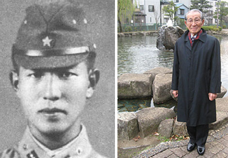 Onoda khi còn là một anh lính trẻ (ảnh trái) và khi về già. |