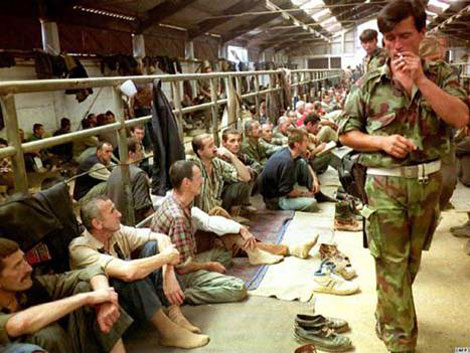 | NgườI Bosnia và Croatia trong một trại tập trung của quân đội Serb. |