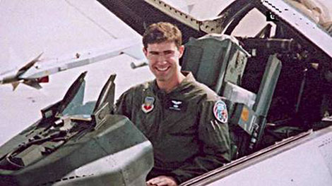 | O'Grady trong buồng lái chiếc F16. |