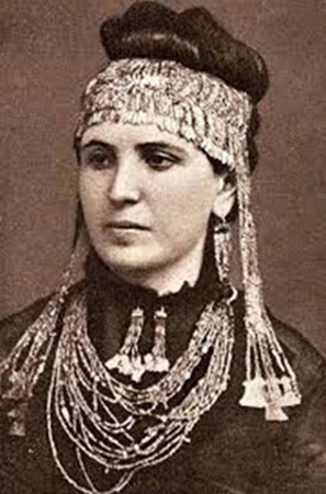 | Bà Sophia - phu nhân của H. Schliemann thường đeo đồ trang sức do chồng khai quật được. |