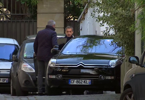 | Cựu Tổng thống Nicolas Sarkozy ở gần nhà vào sáng ngày 21-3. (Ảnh: AP). |