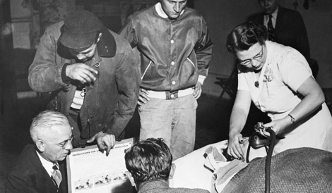 | Một y tá địa phương đang cung cấp ôxy cho bệnh nhân trong bệnh viện hồi sức ở Donora. Ảnh: Bettmann/ Contributor. |