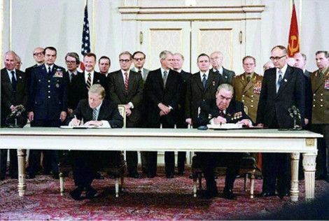 | Ngày 18 tháng 6 năm 1979, Hoa Kỳ và Liên Xô ký giai đoạn II của Hiệp ước hạn chế vũ khí chiến lược. |